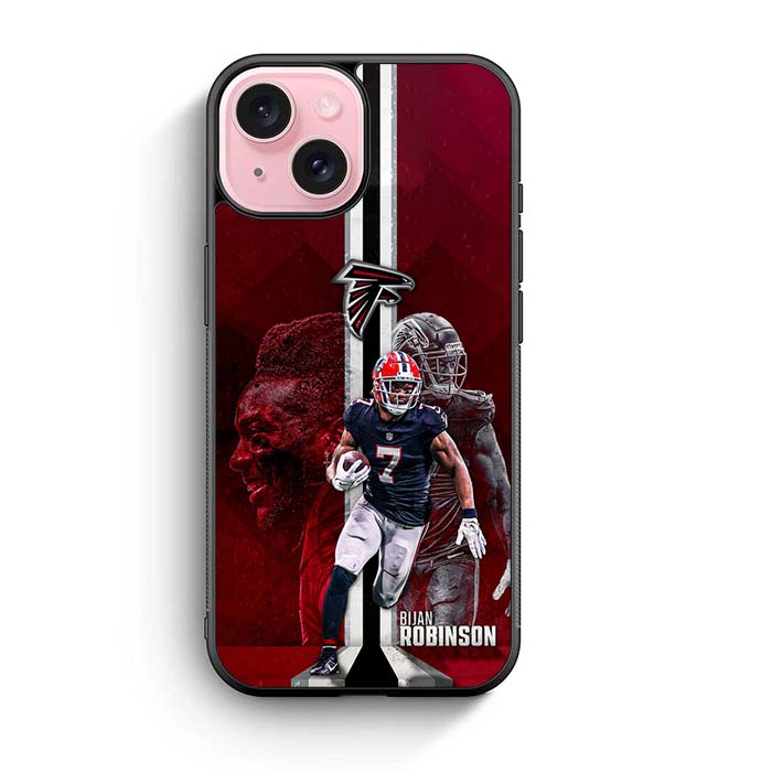 Atlanta Falcons Bijan Robinson iPhone 15/ iPhone 15 Plus/ iPhone 15 Pro/ iPhone 15 Pro Max Case is designed with modern form and function in mind. This premium-durable cases protect your phone in every situation while being very light. The surface is perfect for high quality prints, making it a must-have style accessory.