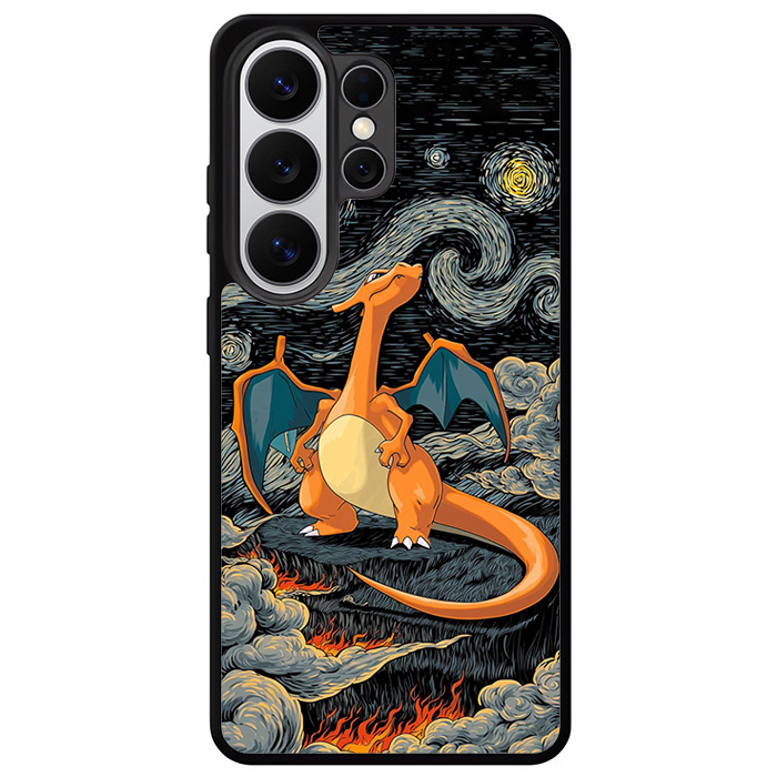 Charizard Inferno Beneath the Starry Night Pokemon Samsung Galaxy S26 Series Case designed with modern form and function in mind. This premium-durable cases protect your phone in every situation while being very light. The surface is perfect for high quality prints, making it a must-have style accessory.