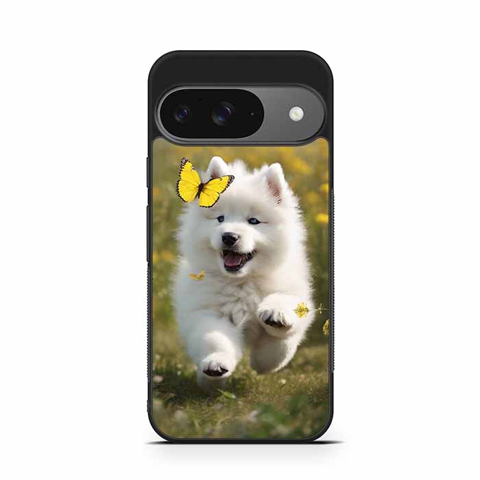 Cute puppy catching butterfly Google Pixel 9 | Pixel 9 Pro | Pixel 9 Pro XL Case is designed with modern form and function in mind. This premium-durable cases protect your phone in every situation while being very light. The surface is perfect for high quality prints, making it a must-have style accessory.