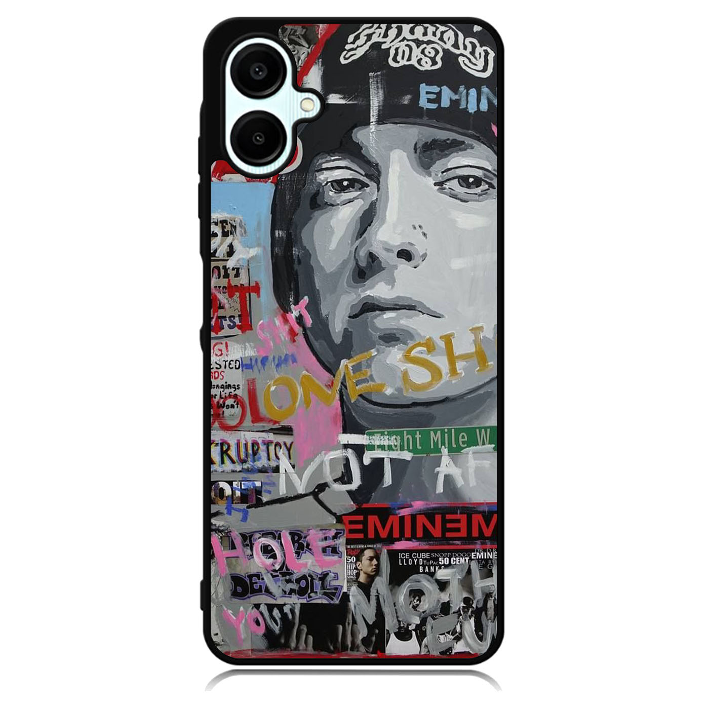 Eminem Street Art Samsung Galaxy A06 Case is designed with modern form and function in mind. This premium-durable cases protect your phone in every situation while being very light. The surface is perfect for high quality prints, making it a must-have style accessory.