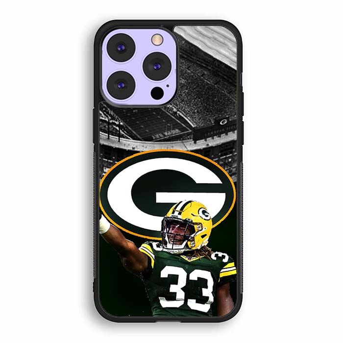 Green Bay Packer Aaron Jones iPhone 14/ iPhone 14 Plus/ iPhone 14 Pro/ iPhone 14 Pro Max Case is designed with modern form and function in mind. This premium-durable cases protect your phone in every situation while being very light. The surface is perfect for high quality prints, making it a must-have style accessory.