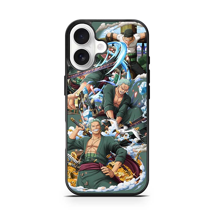 One Piece Collage Roronoa Zoro iPhone 17/ Iphone 17 Pro/ iPhone 17 Pro Max Case is designed with modern form and function in mind. This premium-durable cases protect your phone in every situation while being very light. The surface is perfect for high quality prints, making it a must-have style accessory.
