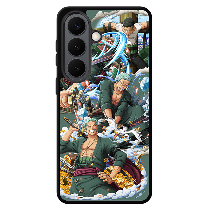 One Piece Collage Roronoa Zoro Samsung Galaxy S26 Series Case designed with modern form and function in mind. This premium-durable cases protect your phone in every situation while being very light. The surface is perfect for high quality prints, making it a must-have style accessory.
