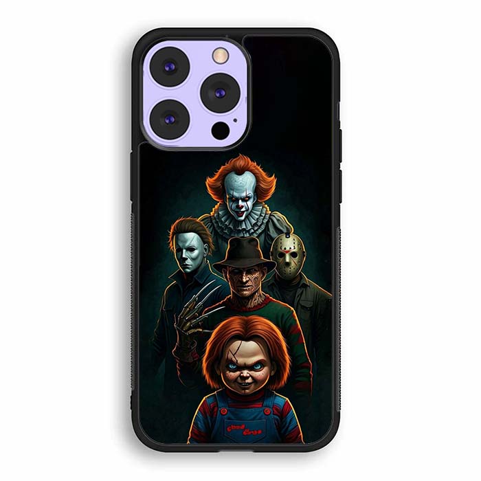 Pennywise Micheal Myers Jason Voorhees and Chucky iPhone 14/ iPhone 14 Plus/ iPhone 14 Pro/ iPhone 14 Pro Max Case is designed with modern form and function in mind. This premium-durable cases protect your phone in every situation while being very light. The surface is perfect for high quality prints, making it a must-have style accessory.