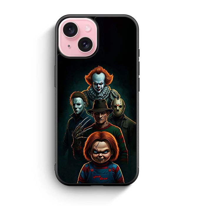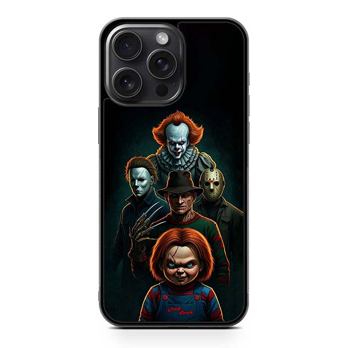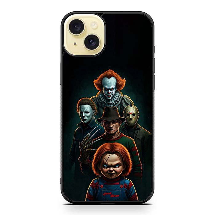 Pennywise Micheal Myers Jason Voorhees and Chucky iPhone 15/ iPhone 15 Plus/ iPhone 15 Pro/ iPhone 15 Pro Max Case is designed with modern form and function in mind. This premium-durable cases protect your phone in every situation while being very light. The surface is perfect for high quality prints, making it a must-have style accessory.