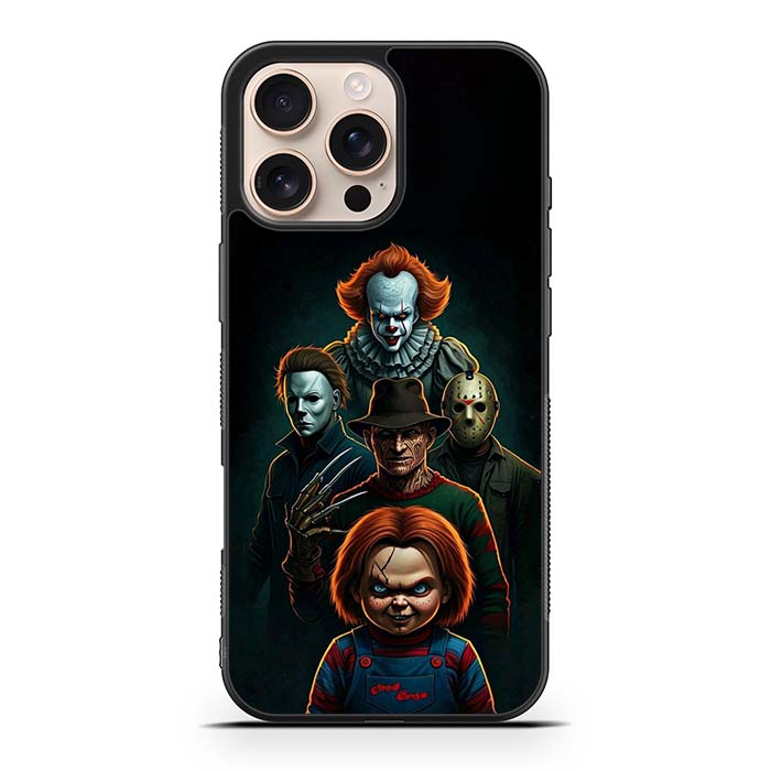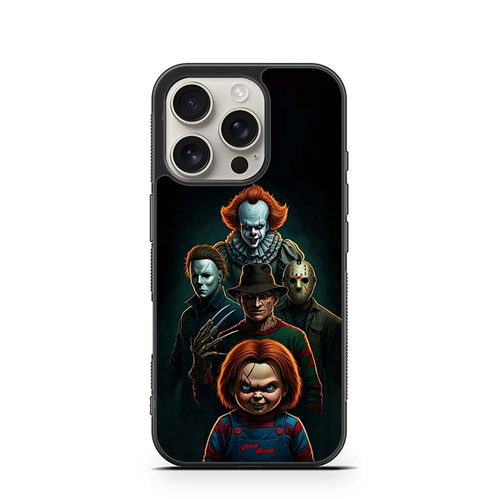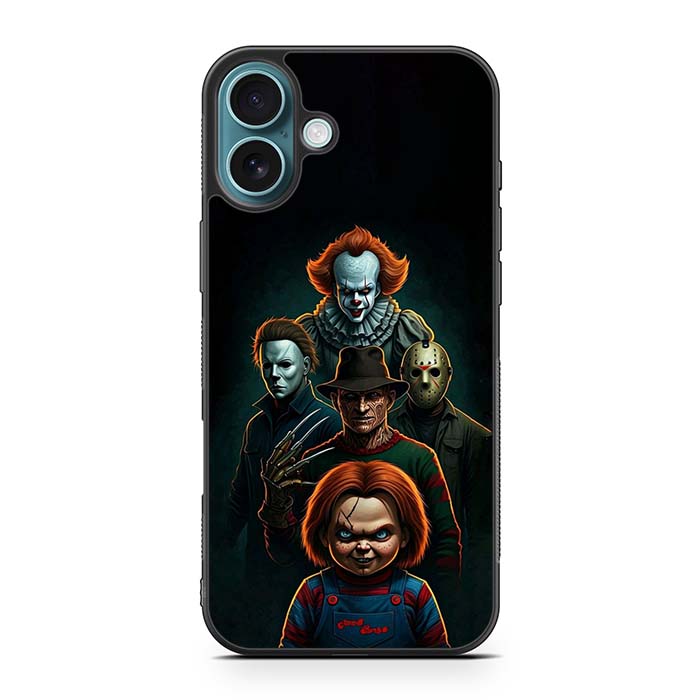 Pennywise Micheal Myers Jason Voorhees and Chucky iPhone 16/ iPhone 16 Plus/ iPhone 16 Pro/ iPhone 16 Pro Max Case is designed with modern form and function in mind. This premium-durable cases protect your phone in every situation while being very light. The surface is perfect for high quality prints, making it a must-have style accessory.